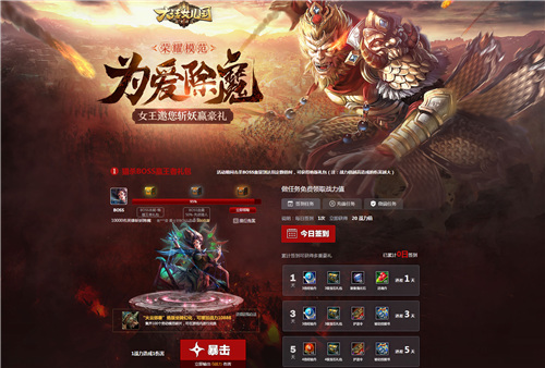 想要在战斗中获得战力值的庇护很简单,只需参加签到任务和充值任务即可。签到任务是每日签到1次,即可获得20战力值及作战礼包奖励。充值任务是每充值1元即颗获得10点战力值,1战力值可对BOSS造成1点伤害,充值不同金额即可获得丰富礼包奖励,获得礼包后登陆游戏内福利大厅使用礼包码领取即可,为你备足物资,和BOSS来场硬对硬的较量!