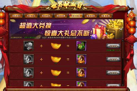 【活动内容】活动期间,玩家可以将背包里某些道具加少许元宝即可换取超值对应道具,变废为宝,兑换次数有限!