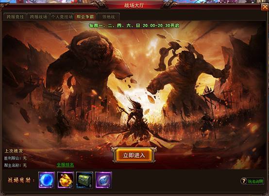 5.周二、周四帮会争霸前十名的帮会将会获得对应领地战参战资格