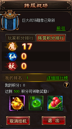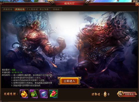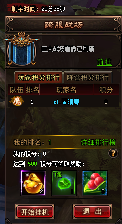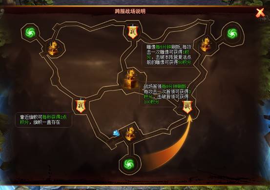 5.玩家掉线或退出战场后可以重入战场,但是个人积分清零,且不一定回到原来的战场。