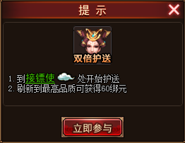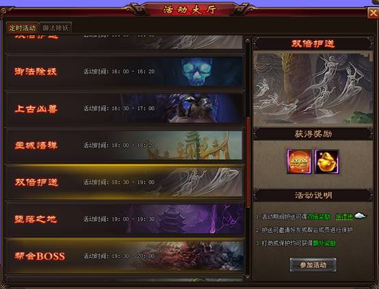 9、双倍活动时段(15:30-16:00、18:30-19:00),活动时间内进行护送可获得双倍收益