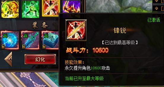 1. 神兵进阶从3阶升到6阶中,每阶开启一个神兵技能,一共四个,神兵技能通过神兵技能书来提升等级。在战斗中有一定几率触发这些技能,且可同时触发多个技能。