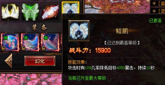 3. 天羽每成功进阶都可获得更高战力,更梦幻外型,天羽阶数越高,所能使用属性丹最大数量也越高。