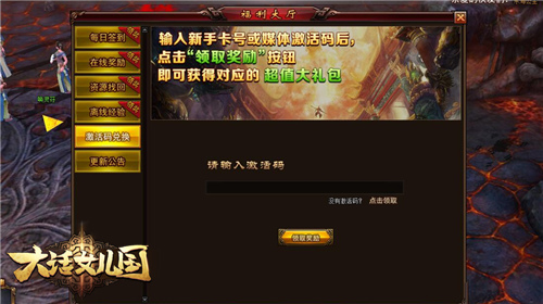 2. 进入游戏,找到【福利大厅——激活码兑换】,将原先获得的激活码复制粘贴进对话框中,完成后点击“领取奖励”,物资会自动落入玩家背包中。